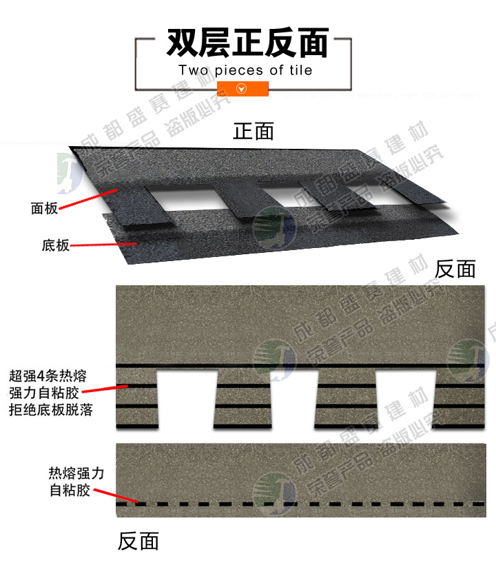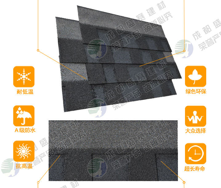 本款产品颜色丰富,一般适用于广泛应用于高档别墅、高档小区等工程,产品可自由裁剪,能成功覆盖于不同形状和不 同基层的屋顶。适用屋面坡度从15°到90°不同建筑。
